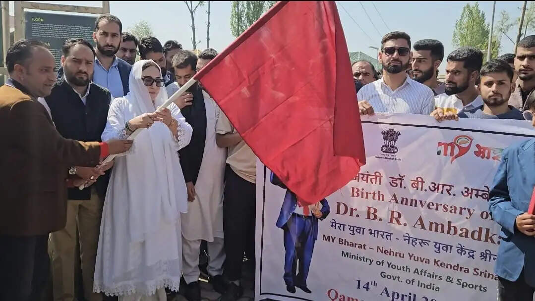 जम्मू, 13 अप्रैल (हि.स.)। नेहरू युवा केंद्र संगठन ने माई भारत के तत्वावधान में डॉ. बी.आर. अंबेडकर की जयंती मनाने के लिए होकरसर वेटलैंड, जैनाकोट से नरबल क्रॉसिंग तक जय भीम पदयात्रा का आयोजन किया। जेके वक्फ बोर्ड की अध्यक्ष डॉ. सैयद दरख्शां अंद्राबी ने इसका नेतृत्व किया और पदयात्रा को हरी झंडी दिखाई। डॉ. अंबेडकर की शिक्षाओं के प्रचार-प्रसार के उद्देश्य से निकाली गई इस पदयात्रा में विभिन्न जिलों के 600 से अधिक युवाओं ने भाग लिया।