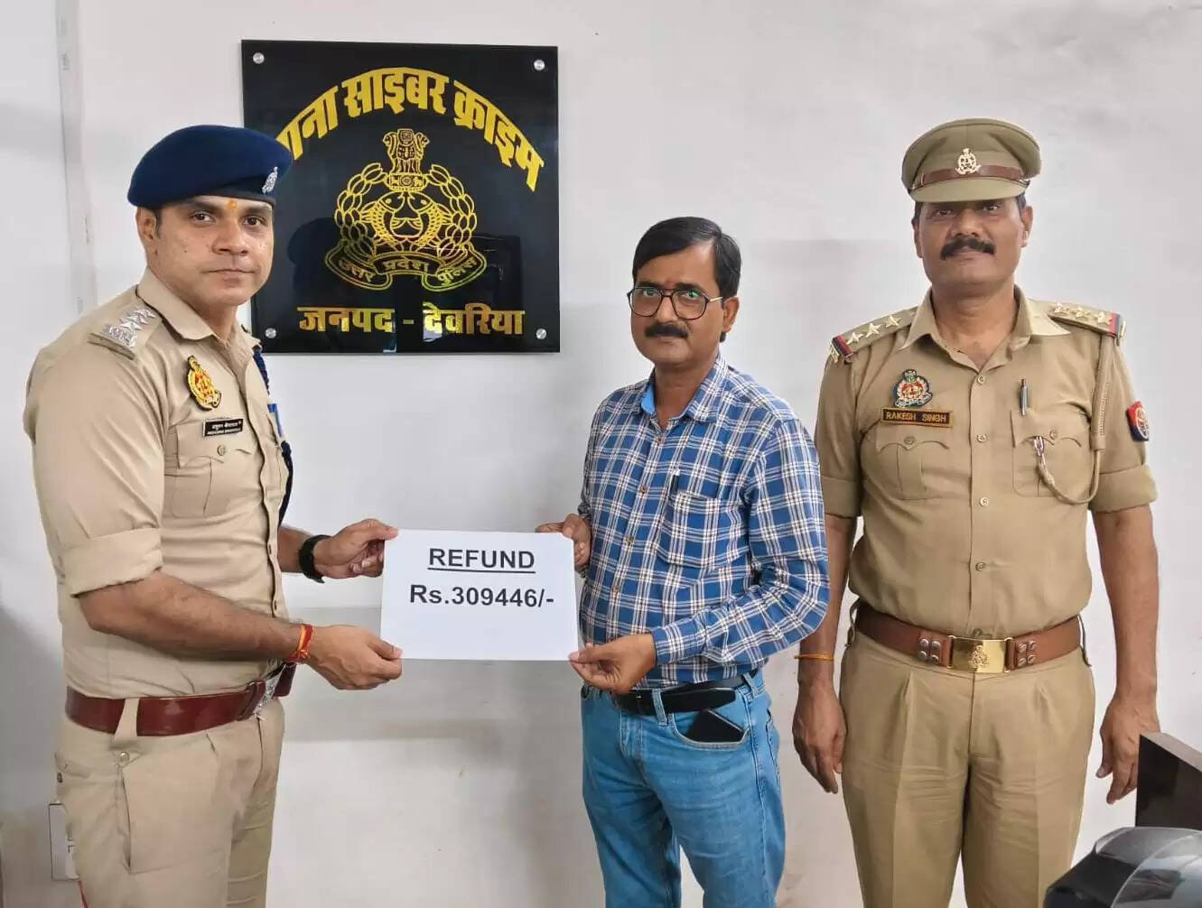 देवरिया पुलिस ने साइबर फ्रॉड पीड़ित के बैंक खाते में वापस कराए 3,09,446 रुपये