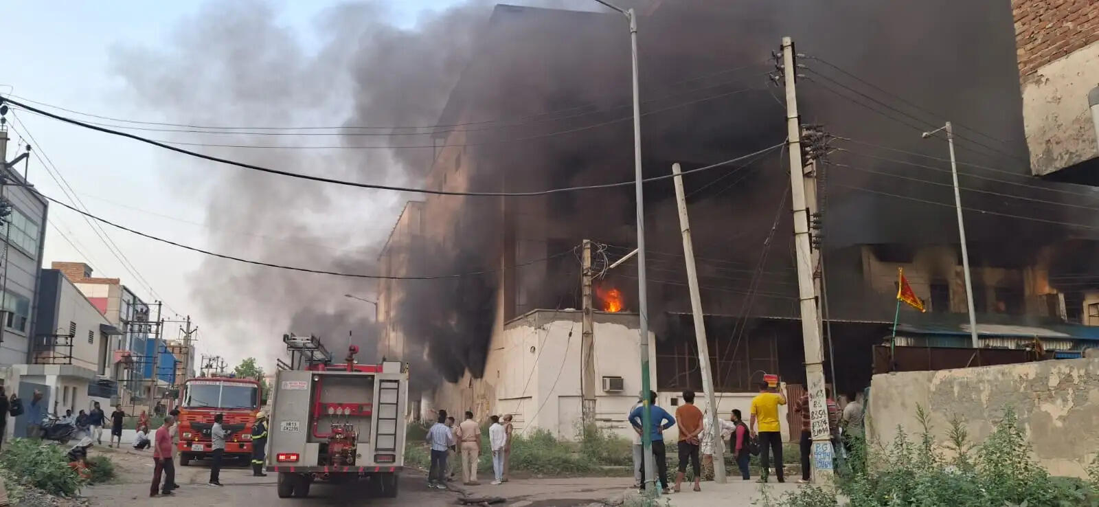 - एक फैक्ट्री में लगी आग चार फैक्ट्रियों के पांच भवनों तक जा पहुंची