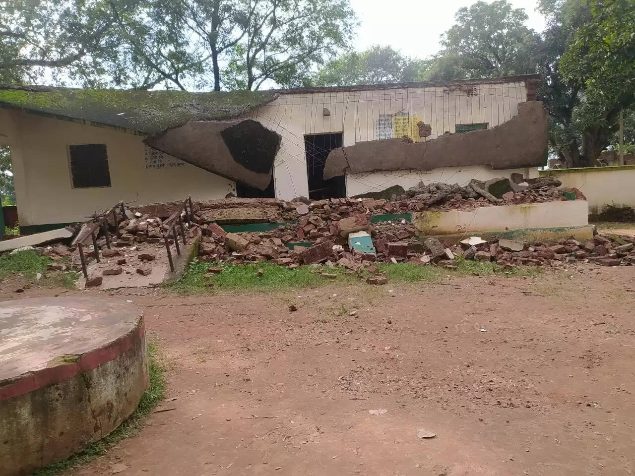 मध्यान भोजन के लिए बाहर निकलते ही गिरा स्कूल भवन, बाल-बाल बचे छात्र