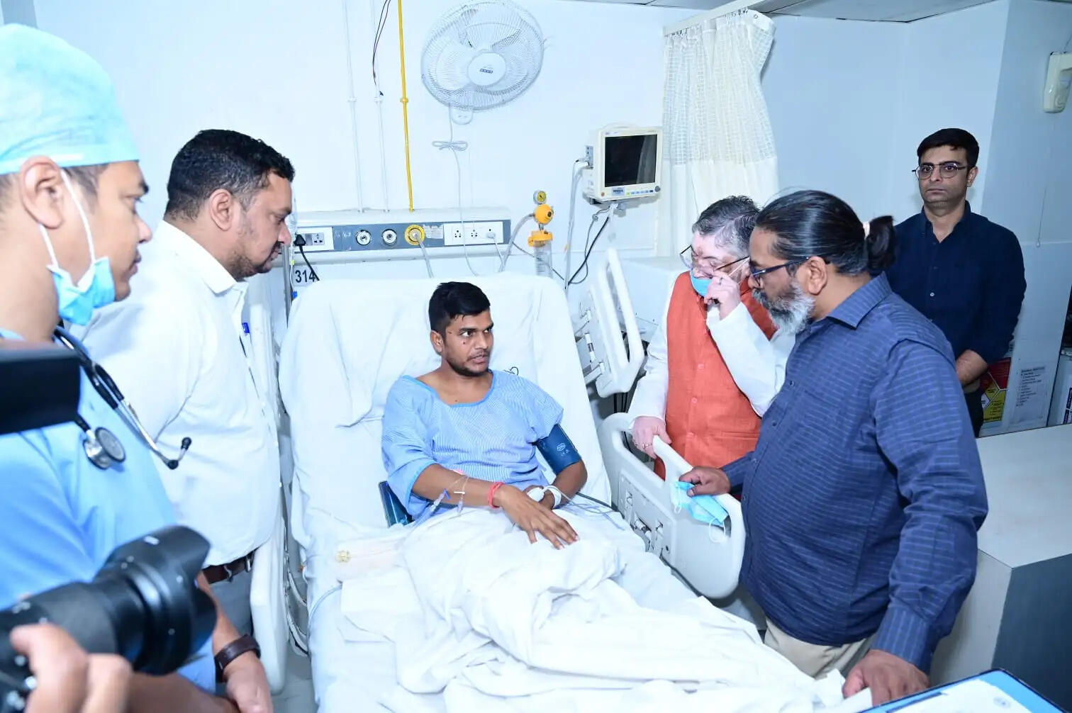राज्यपाल और मुख्यमंत्री ने राज अस्पताल, रांची में भर्ती कोबरा -203 बटालियन के जवान विष्णु सैनी से भी मुलाकात की और इलाज से संबंधित सारी जानकारी चिकित्सकों से प्राप्त की।