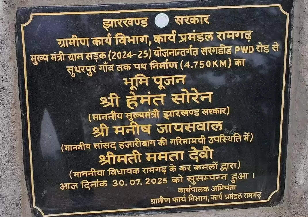 रामगढ़, 1 अगस्त (हि.स.)। रामगढ़ जिले की गोला प्रखंड में सड़क निर्माण योजना के शिलान्यास में प्रोटोकॉल का उल्लंघन कर दिया गया। शिलान्यास कार्यक्रम संपन्न होने के बाद यह मामला तूल पकड़ लिया और राजनीतिक विवाद शुरू हो गया। गोला प्रखंड के सरगडीह में मुख्यमंत्री ग्रामीण सड़क योजना के तहत सरगडीह पीडब्ल्यूडी रोड से सुथरपुर गांव तक पथ के भूमि पूजन के दौरान प्रोटोकॉल उल्लंघन का मामला आते ही विभाग ने त्वरित कार्रवाई की। शिलापट्ट पर हजारीबाग लोकसभा सांसद मनीष जायसवाल का नाम रामगढ़ विधायक के नाम के नीचे लिखे जाने पर हुए विवाद के बाद शुक्रवार को विभाग ने पुराने शिलापट्ट को हटाकर नया शिलापट्ट लगा दिया है।
