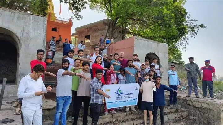 धारः मूंज सागर घाट पर स्वच्छता का संकल्प, जल गंगा संवर्धन अभियान के तहत सफाई