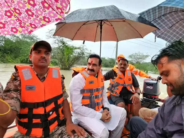 दतिया में पूर मंत्री डाॅ. नरोत्तम मिश्रा बाढ़ प्रभावित क्षेत्रों में पहुँचकर पीड़ितों से मिले