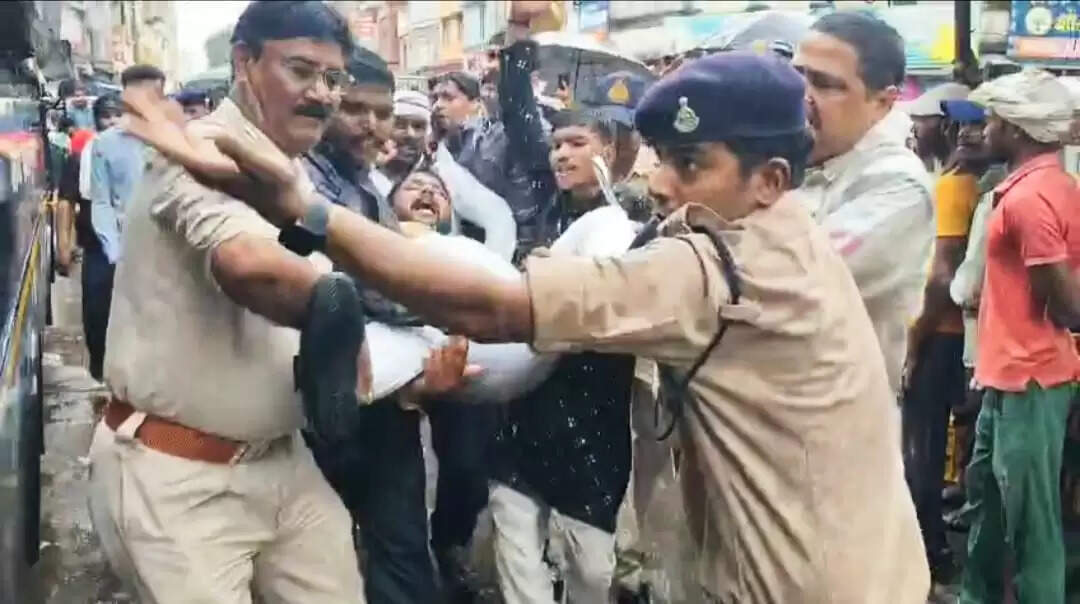 मप्र कांग्रेस के अध्यक्ष जीतू पटवारी द्वारा विगत दिवस अशोकनगर जिले में एक युवक को मल खिलाये जाने जैसी अमानवीय घटना का विरोध पर पीड़ित को न्याय दिलाने के लिये पहल किये जाने पर जीतू पटवारी के खिलाफ मुंगावली थाने में फर्जी एफआईआर दर्ज कराने के विरोध में शुक्रवार को युवा कांग्रेस ने मुख्यमंत्री डॉ यादव को काला झंडा दिखाने की योजना पर पुलिस ने पानी फेर दिया। जिले के कोतमा में प्रदेश के मुख्यमंत्री का आगमन पर आज लगातार हो रही झमाझम बारिश के बीच गांधी चौक कोतमा में युवा कांग्रेस ने काली पट्टी बांधकर एवं हाथों में काला कपड़ा लेकर मुख्यमंत्री के खिलाफ जमकर नारेबाजी करने लगे। पुलिस ने प्रर्दशनकारियों को गांधी चौक कोतमा में घेरा बंदी कर कार्यक्रम स्थल पर कूच करने लगे के दौरान को गिरफ्तार कर अस्थाई जेल मंगल भवन में कैद कर दिया। वहीं मुख्यमंत्री का दौरा रद्द होने पर कांग्रेसियों को रिहा कर दिया गया।