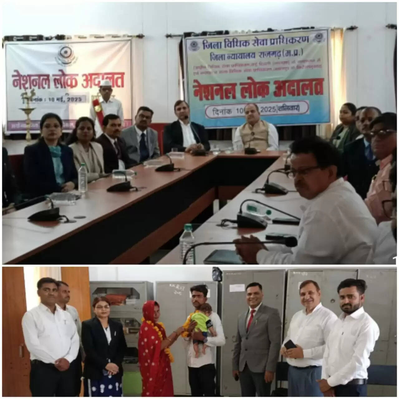 राजगढ़, 10 मई (हि.स.)। द्वितीय नेशनल लोक अदालत शनिवार को जिला न्यायालय राजगढ़ परिसर स्थित एडीआर सेंटर के सभागृह में हुआ, आयोजन की अध्यक्षता जिला न्यायाधीश राजीव एम आप्टे ने की, विशेष अतिथि के रुप में कलेक्टर गिरीशकुमार मिश्रा मौजूद रहे। नेशनल लोक अदालत का आयोजन जिला न्यायालय राजगढ़, तहसील ब्यावरा, नरसिंहगढ़, सारंगपुर, खिलचीपुर और जीरापुर में एक साथ किया गया।