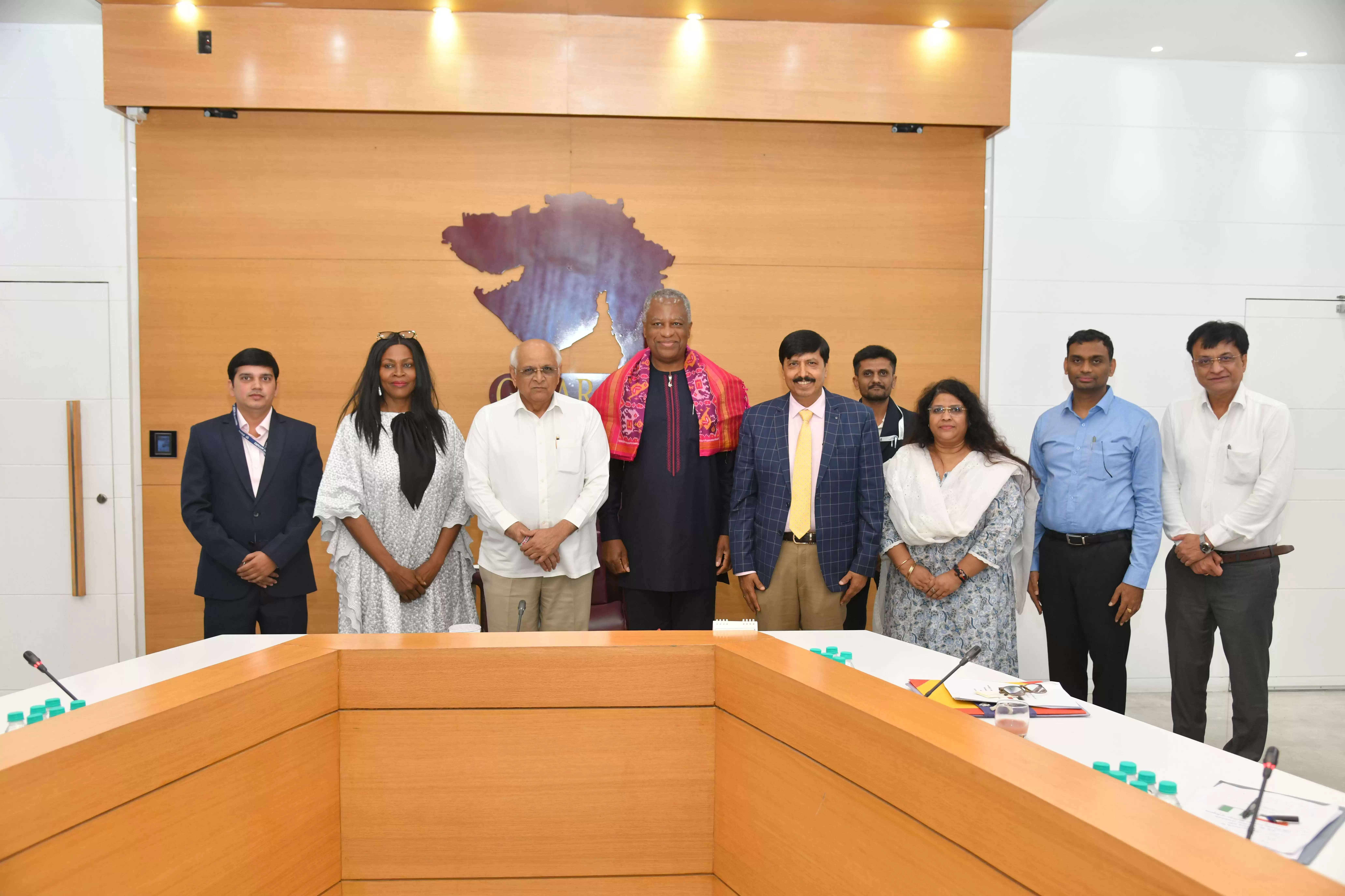 पूर्व नाइजीरियाई विदेश मंत्री जेफ्री ओन्यामा ने आज अपनी धर्मपत्नी के साथ मुख्यमंत्री भूपेंद्र पटेल से मुलाकात की और गुजरात की प्रगतिशील एवं भव्य विरासत से प्रभावित होने का आनंद व्यक्त किया। गुजरात के विश्वविद्यालयों में नाइजीरियाई विद्यार्थियों को उच्च शिक्षा प्राप्त करने में राज्य के सहयोग के लिए भी उन्होंने गुजरात सरकार की सराहना की।