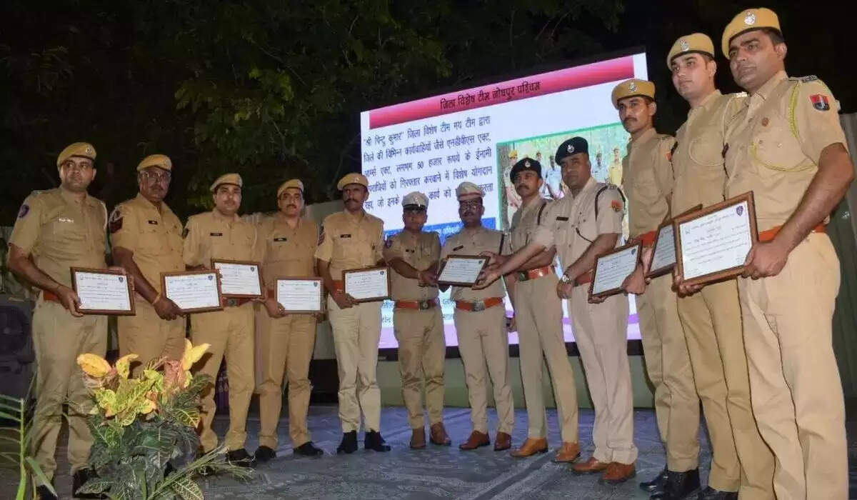 सम्मानित होने वालों में विवेक विहार थानाधिकारी दिलीप खदाव, बासनी थानाधिकारी नितिन दवे, बोरानाडा थानाधिकारी शकील अहमद, भगत की कोठी थानाधिकारी राजीव भादू, राजीव गांधी नगर थानाधिकारी सुरेश पोटलिया, शास्त्रीनगर थानाधिकारी जुल्फिकार अली, सूरसागर थानाधिकारी हरीश सोलंकी, टीम कलिका आदि शामिल रहे।