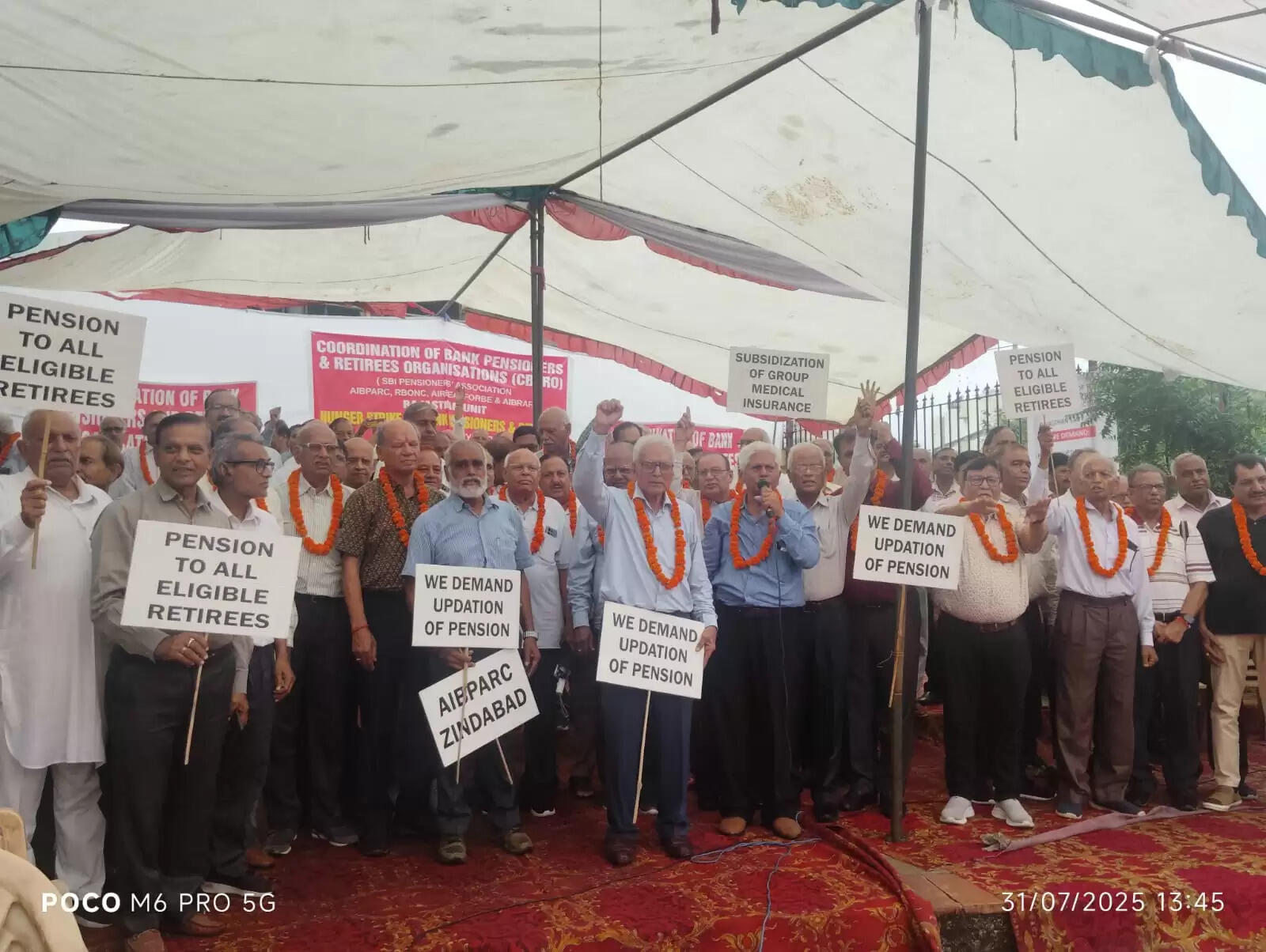 जयपुर, 01 अगस्त (हि.स.)। कोडीनेशन ऑफ बैंक पैशनर्स एण्ड रिटायरीज ऑर्गेनाइजेशन से संबंधित बैंक पेंशनर्स एवं रिटायरीज संगठनों के सदस्यों ने शहीद स्मारक गवर्नमेंट होस्टल पर सामूहिक भूख हड़ताल एवं प्रदर्शन किया।