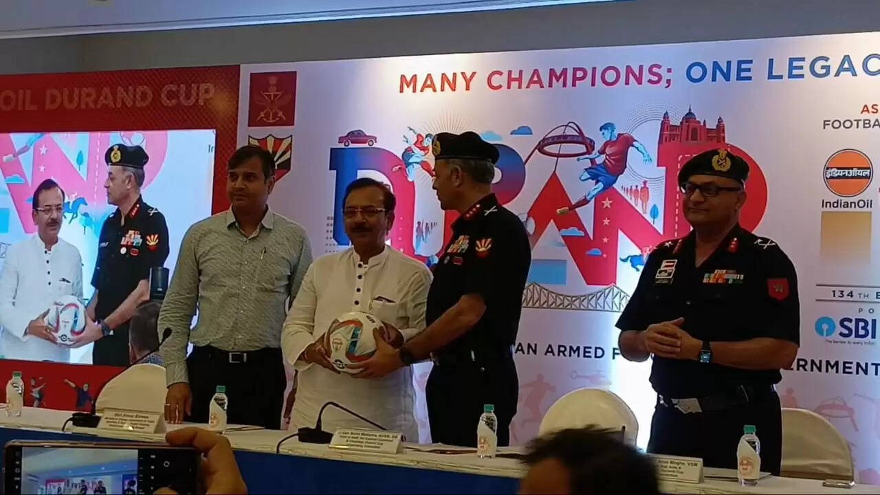 यह जानकारी सेना के पूर्वी कमान मुख्यालय विजय दुर्ग में पूर्वी कमान के चीफ ऑफ डिफेंस स्टाफ लेफ्टिनेंट जनरल मोहित मल्होत्रा और पश्चिम बंगाल सरकार के खेल मंत्री अरूप विश्वास ने एक संयुक्त प्रेस कांफ्रेंस के दौरान गुरुवार को दी है। पूर्वी कमान के शीर्ष अधिकारी मल्होत्रा ने बताया कि डुरंड कप कोलकाता वासियों के लिए सिर्फ टूर्नामेंट नहीं बल्कि एक भावना है। इस ऐतिहासिक प्रतियोगिता के माध्यम से युवा खिलाड़ियों को अपनी प्रतिभा दिखाने का मंच मिलता है। टूर्नामेंट में इस बार छह इंडियन सुपर लीग (आईएसएल) की टीमें, चार आई-लीग टीमें, दो आई-लीग-दो टीमें और भारतीय सेना, नौसेना, नेपाल और मलेशिया की टीमें हिस्सा लेंगी।