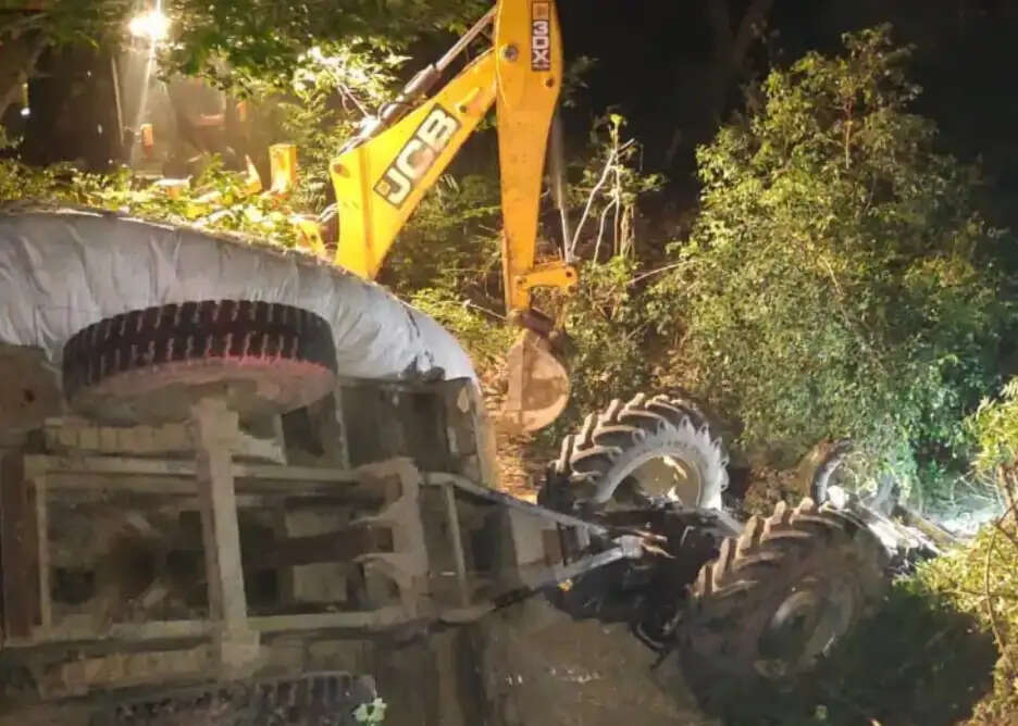 भूसा लेकर जा रही ट्रैक्टर-ट्रॉली पलटी, युवक की मौत, एक घायल