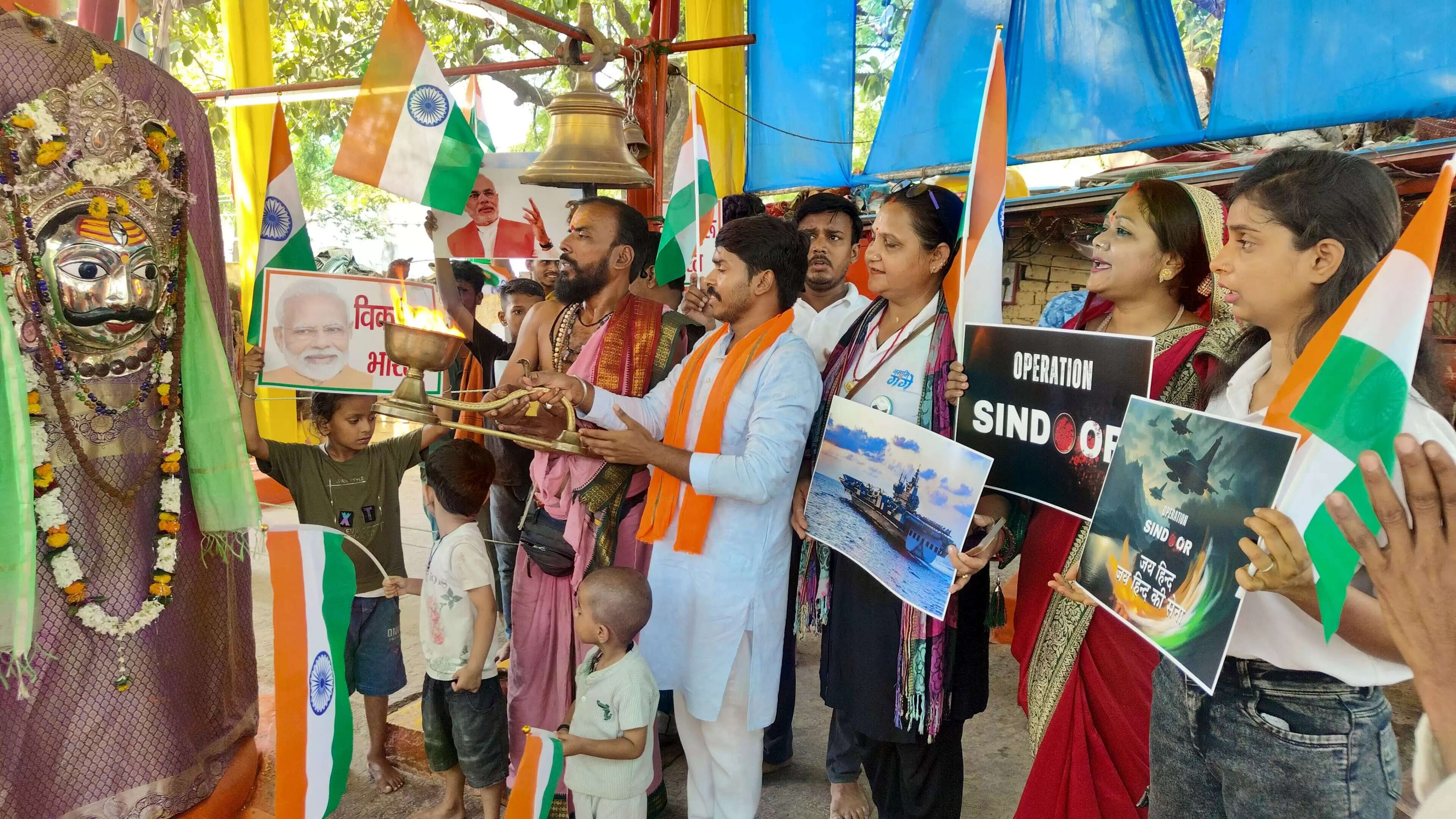 मंच के जिला संयोजक शिवम अग्रहरि के संयोजन में न्याय के प्रतीक बाबा लाट भैरव के विग्रह पर सिंदूर लेपन कर राष्ट्र की सुरक्षा में लगे सैनिकों को शक्ति और विजय का आशीर्वाद मांगा गया। उपस्थित श्रद्धालुओं ने हाथों में राष्ट्रीय ध्वज तिरंगा लेकर वीर जवानों के सम्मान में नारे लगाए और भारत की एकता एवं अखंडता की रक्षा हेतु संकल्प लिया।
