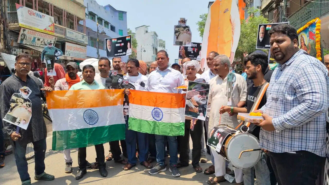वाराणसी, 07 मई (हि.स.)। पाकिस्तान और पीओके में आतंकियों के नौ ठिकानों पर भारतीय सेना के स्ट्राइक किए जाने पर पूरे काशी में जश्न का माहौल है। 'ऑपरेशन सिंदूर' की खुशी हर नागरिक चाहे युवा हो या वृद्ध सभी भारतीय सेना के शौर्य को सलाम कर रहे हैं। बुधवार को शहर में जगह—जगह विभिन्न संगठनों से जुलूस निकाल कर भारतीय सेना के साथ भारत के प्रधानमंत्री नरेन्द्र मोदी का आभार जताया।