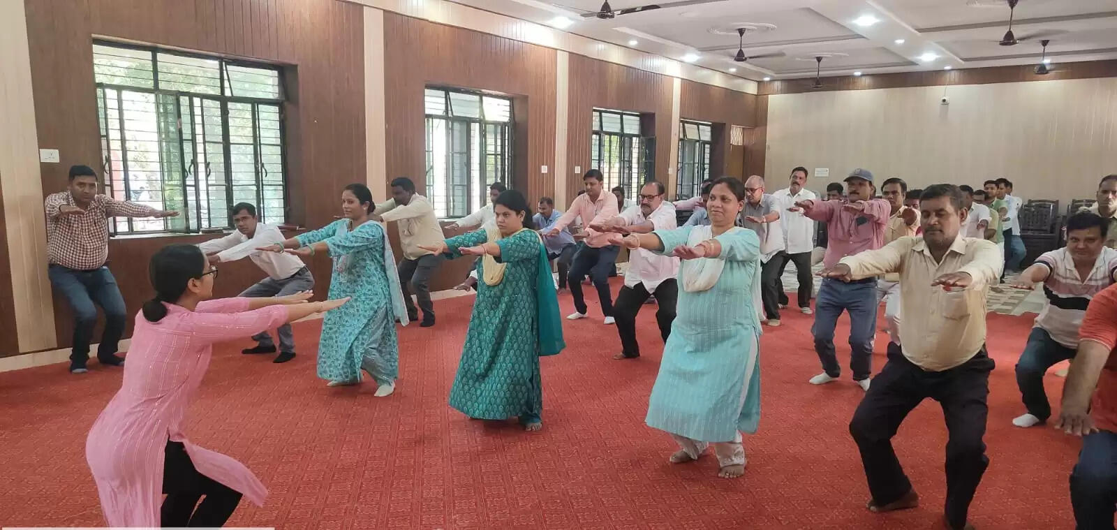 योग सप्ताह की तैयारी में ब्लॉक सभागार बना साधना स्थल