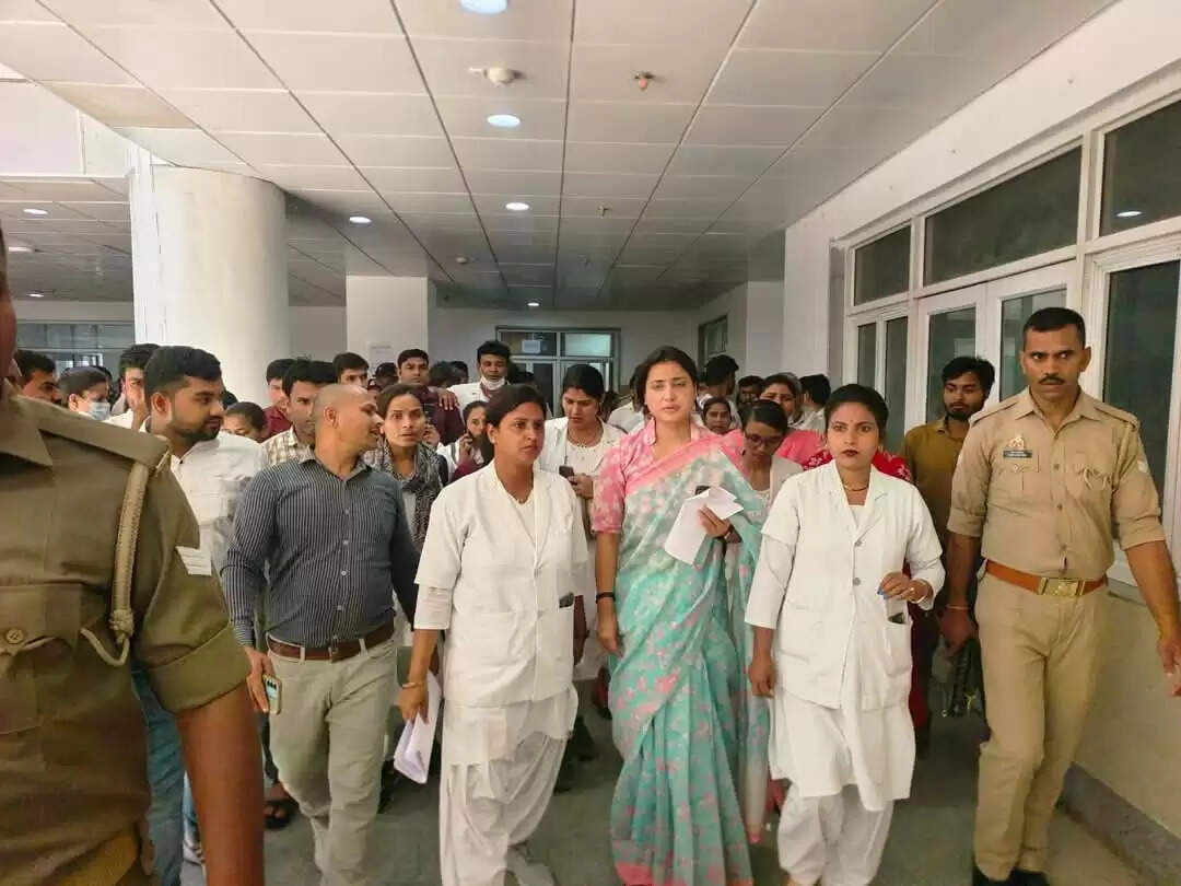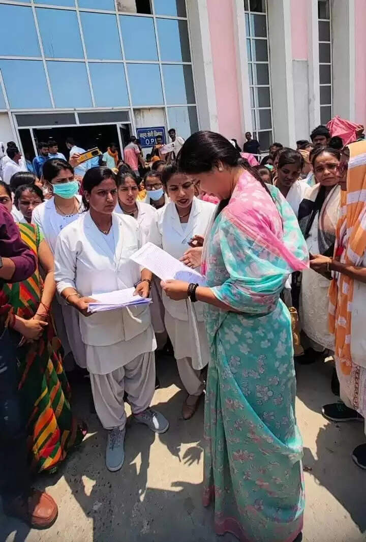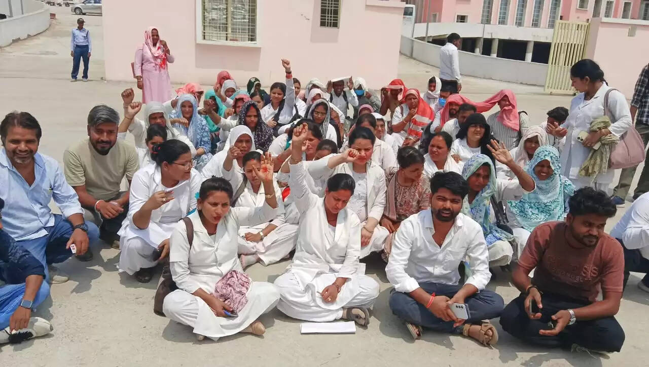 धरना दे रही स्टाफ नर्सों ने विधायक रागिनी सोनकर को बताया कि कॉलेज प्रशासन ने पिछले तीन वर्षों से कार्यरत नर्सों को उनके मूल पद से हटाकर चतुर्थ श्रेणी (स्वीपर) के पद पर तैनात कर दिया है। साथ ही उनके वेतन में भी कटौती कर दी गई है। विधायक ने चेतावनी दी है कि वह सड़क से लेकर सदन तक नर्सों की आवाज उठाएंगी।डॉ. सोनकर ने कॉलेज प्रशासन को निर्देश दिया है कि एक सप्ताह के भीतर सभी स्टाफ का बकाया वेतन भुगतान किया जाए। उन्होंने कर्मचारियों की मूलभूत सुविधाओं की कमी पर भी प्रशासन को फटकार लगाई है।धरने में अरविन्द कुमार विश्वकर्मा, शुभम् मौर्या, अंजली वर्मा, गरिमा राय, प्रियंका, श्वेता सिंह, श्वेता मौर्य, रेनू यादव समेत सैकड़ों लोग मौजूद रहे।