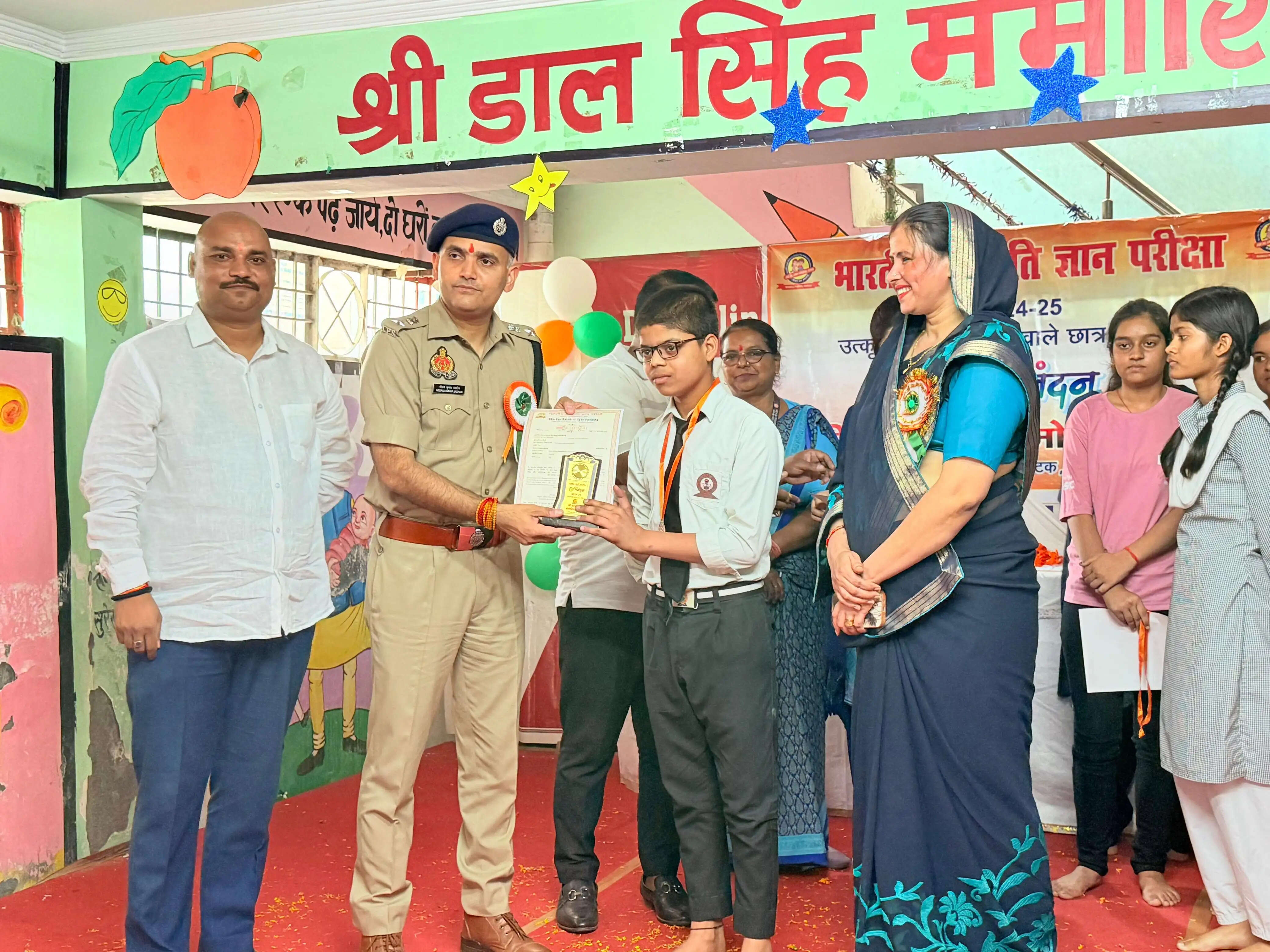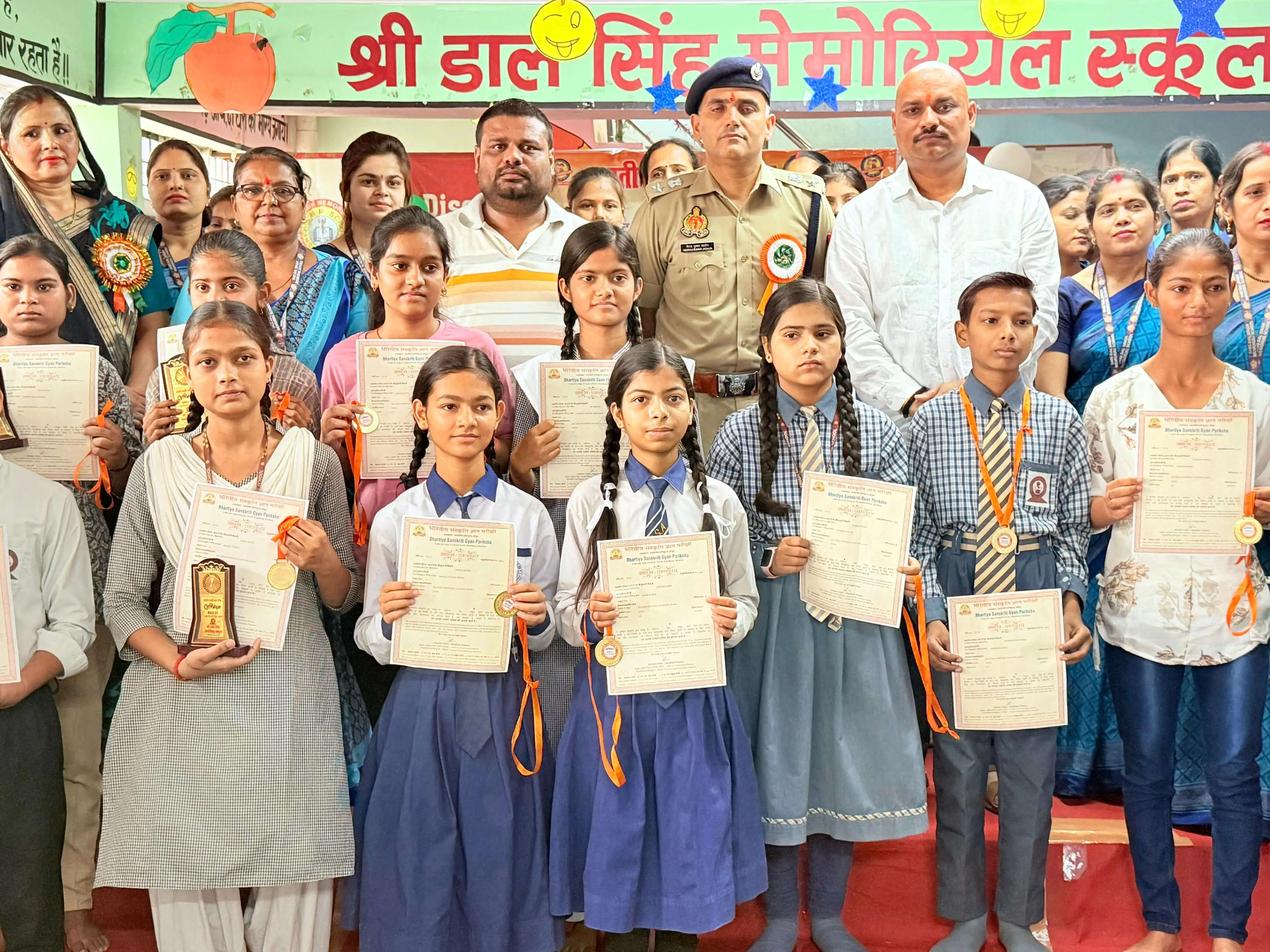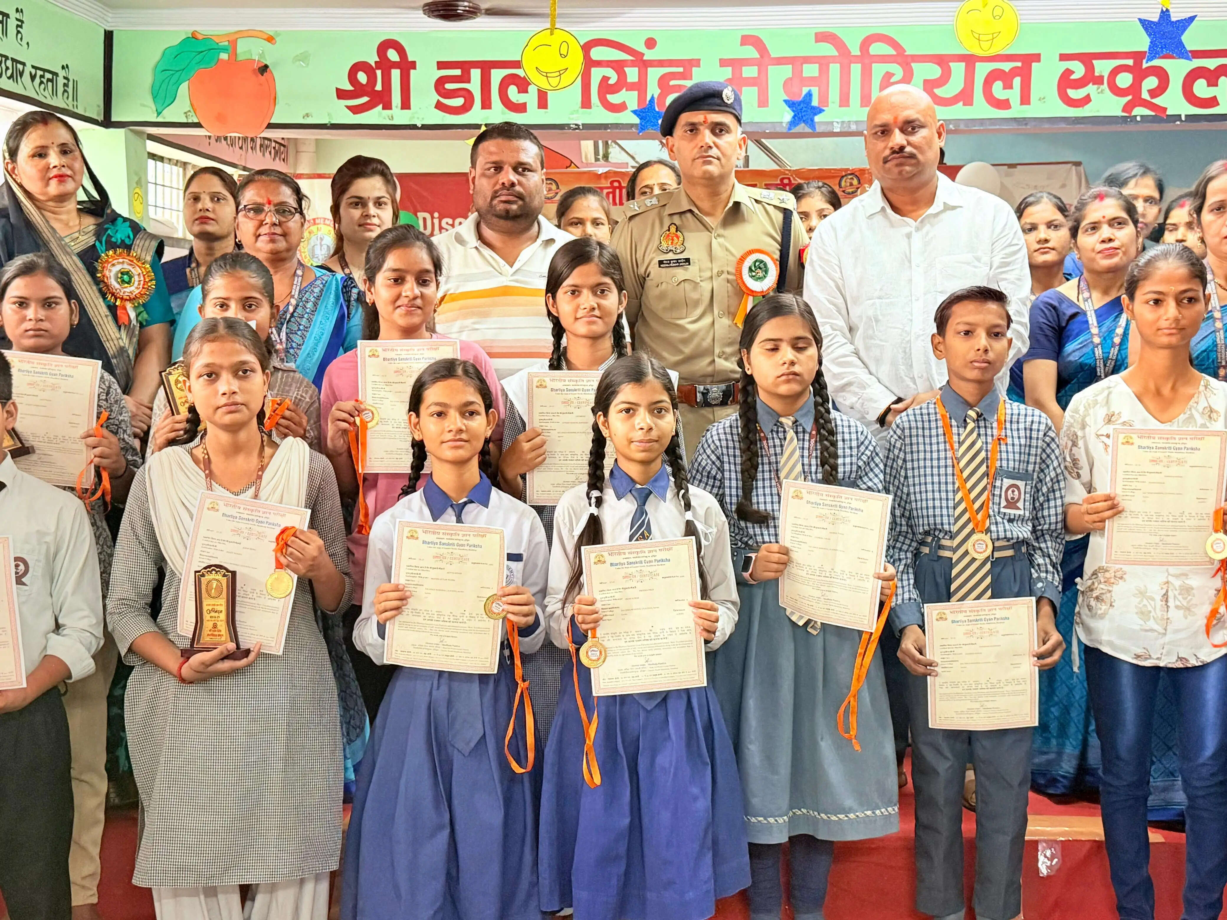 हरदोई, 07 मई(हि.स.)। मंगली पुरवा फाटक स्थित श्री डाल सिंह मेमोरियल स्कूल में बुधवार को सम्मान समारोह का आयोजन किया गया। इसमें भारतीय संस्कृति ज्ञान परीक्षा, हाई स्कूल बोर्ड परीक्षा 2025 तथा ट्रैफिक रूल्स पर आधारित पोस्टर प्रतियोगिता में उत्कृष्ट प्रदर्शन करने वाले छात्र-छात्राओं को सम्मानित किया गया। कार्यक्रम के मुख्य अतिथि जिले के पुलिस अधीक्षक नीरज कुमार जादौन रहे। उन्होंने मेधावी बच्चों को प्रशस्ति पत्र, शील्ड एवं मेडल प्रदान कर उनके उज्ज्वल भविष्य की कामना की।