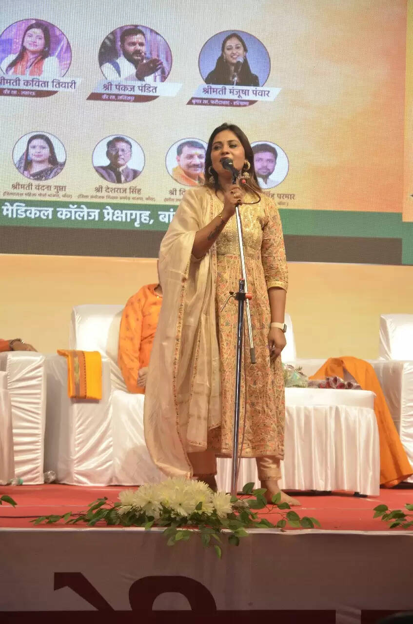 हरियाणा फरीदाबाद से आईं कवयित्री मंजूषा पंवार ने पहलगाम नरसंहार पर भावुक कर देने वाली कविता पढ़ी कि मार दिया पति को, मेहंदी अभी छूट न पाई थी, हिंदू होने की महिला ने कैसी कीमत चुकाई थी। मेरठ की लोकप्रिय कवयित्री अनामिका जैन ने रानी लक्ष्मीबाई की वीरता को उकेरते हुए कहा कि रानी लक्ष्मीबाई चूड़ियां उतार, तलवार धार लेती है, दुर्गा बनकर टूट पड़ी तो अरिदल की फिर शामत है। उनकी अन्य रचना कविता तुमको बतलाएगी, क्या सिंदूर की कीमत है भी खूब सराही गई।