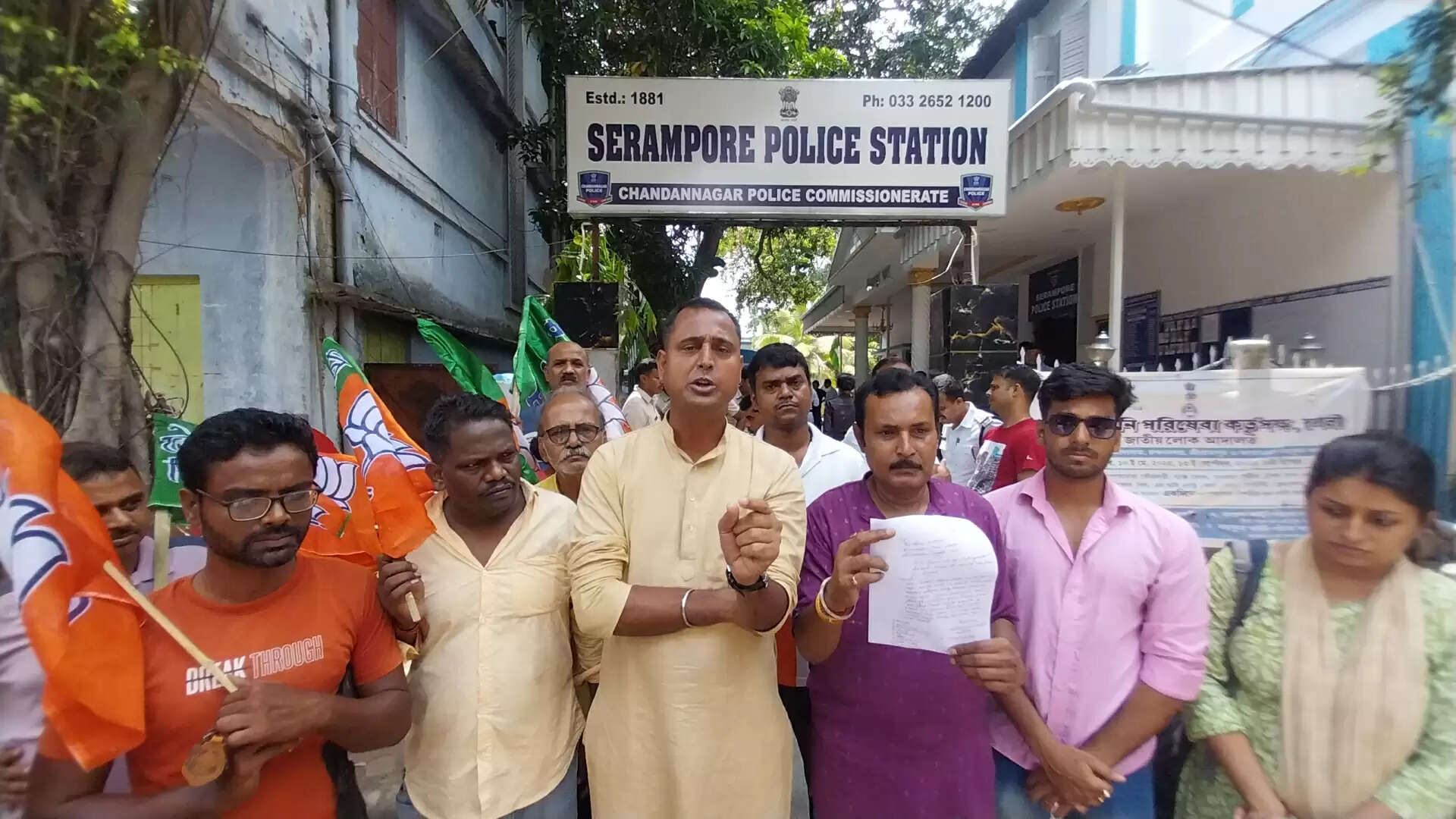 मिली जानकारी के अनुसार, भारतीय जनता युवा मोर्चा के प्रवक्ता हरि मिश्रा के नेतृत्व में श्रीरामपुर थाने के बाहर जम के नारेबाजी हुई। इसके बाद भारतीय जनता पार्टी नेताओं के प्रतिनिधिमंडल ने श्रीरामपुर थाने में जाकर अनुब्रत मंडल के खिलाफ शिकायत दर्ज करवाई।